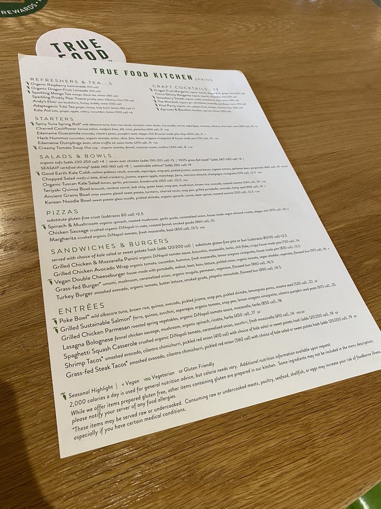 Welcome to True Food Kitchen Kansas City, where health meets flavor in a vibrant atmosphere at 4749 Pennsylvania Ave. Specializing in New American cuisine, this restaurant brings a refreshing take on breakfast and brunch. The menu showcases seasonal salads, like the **Seasonal Ingredient** salad, featuring butternut squash and organic kale, and the popular **Good Earth Kale Cobb**. For hearty starters, don’t miss their **edamame wontons** or the **Roasted Butternut Squash Pizza**, which perfectly balances savory and sweet.